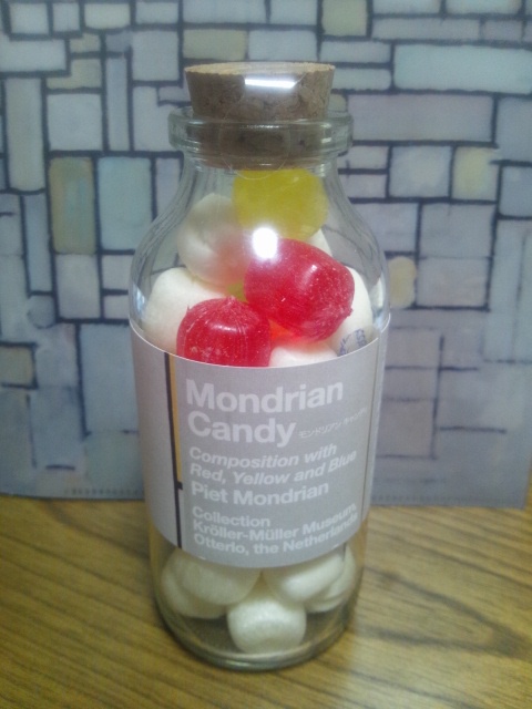 おみやげに買ったモンドリアンのファイルとモンドリアンのキャンディ。